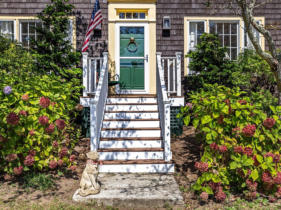 Set on one of Mystic's most admired streets, Captain's Row, 24 West Mystic Avenue offers the rare blend of history, charm, and modern updates. This 1910s home sits proudly at the southern end of West Mystic Avenue and is a minute to downtown Mystic with glimpses of the water along the way. Recently updated with fresh interior and exterior paint, the property is move-in ready and full of character. Inside, natural light pours through the south-facing windows, brightening the open main level. The updated kitchen pairs crisp white cabinetry, dark granite countertops and a granite-topped island with bar seating. In one corner sits a cozy built-in banquette creating both style and functionality. The dining room connects to a versatile sitting area, while the front living room features a cozy fireplace and direct access to the upper floors. Upstairs, three comfortable bedrooms share a renovated bath with soaking tub, step-in shower, and the convenience of second-floor laundry. The insulated third floor, already plumbed for heat and another bathroom, is a blank canvas for a primary suite, studio, or extra space. Outdoors, a deck and patio overlook a fenced backyard with established gardens and a shed, offering privacy and plenty of room for entertaining or quiet enjoyment. Hardwood floors, natural gas, and thoughtful updates add to the home's appeal.