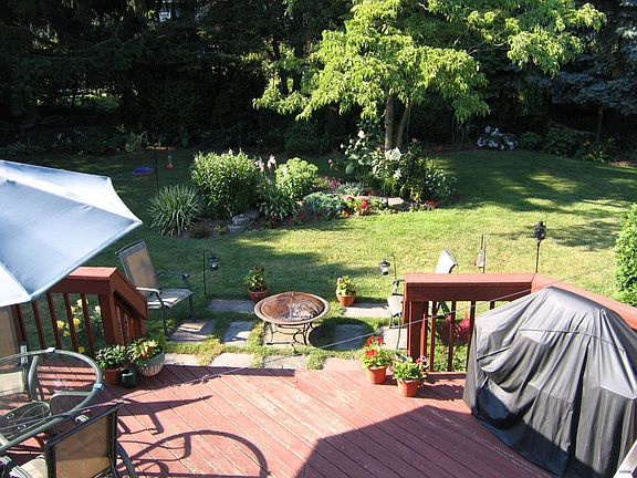 Park like yard on a quiet dead-end street. Very private back yard, loaded with plants that flower throughout the spring, summer, and fall. Huge deck, 2x10's on 16" centers. Desireable 2 car wide concrete driveway. New roof (fresh tear off), 2 levels (6' up) ice/water membrane in 2004. New hot water heater 2005. Mature trees shade house in summer. Close knit, 11 house street. Trailhead at end of street for mountain biking, or for a paved ride, take the newly completed Genesee River Trail all the way to Lake Ontario! Quick drive down Lake Ave to downtown, and convenient to 104/590 and the Parkway. Wegmans 5 mins away, bus line is 50 paces from driveway. Neighborhood Description City taxes, but a Greece zip code, Greece phone number prefix, and overall Greece-like neighborhoods. Convenient to Wegmans, Greece Ridge Center, 104/590/Parkway. Abundant parks, walking, and biking.