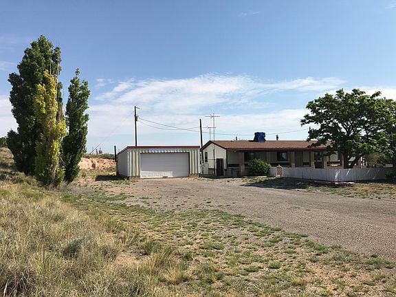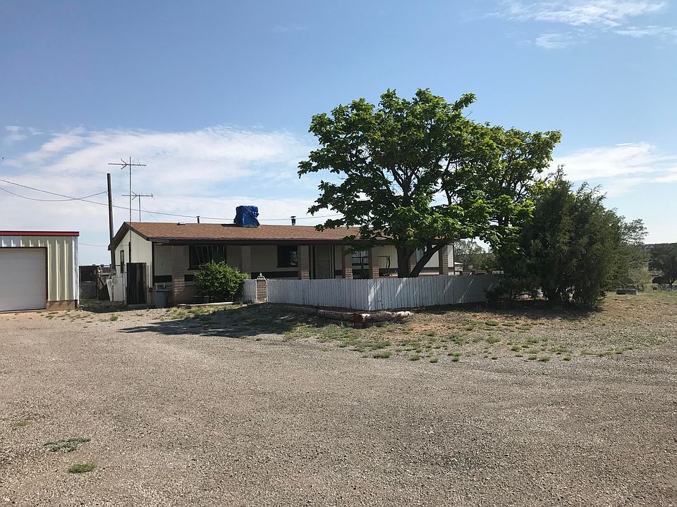 Enjoy a delicious slice of the countryside w/ this 3 bed/2 bath home on 4 acres. Interior features an open floor plan w/ natural lighting, a wood burning stove, evap. cooling, an abundance of kitchen cabinet space, spacious living area, garden tub in master bath, & VIEWS of the rolling hills to the north. Exterior boasts fruit trees (apple & peach), grape vines, GREEN HOUSE, back deck, a privacy fence around the back yard, & fully fenced acreage. Garage & covered area next to house provide excellent additional storage. Decoratively fenced and tree adorned front yard accentuates the beauty of this property. Home also boasts a newer roof, newer septic, & private well. Located conveniently near I-40, Albuquerque is only about a 45 minute drive west and Santa Rosa 1 hour east.
