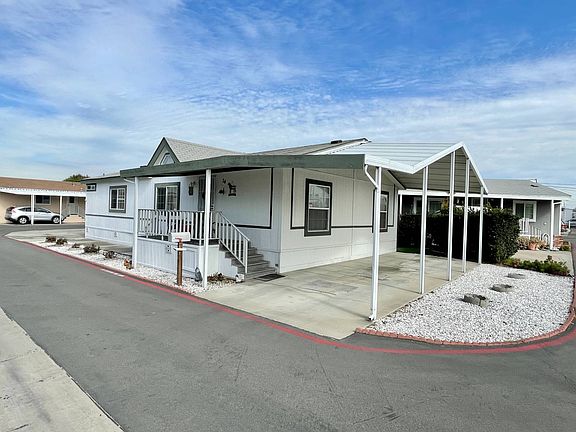 AVAILABLE NOW!! in Rancho La Paz 55+ Mobile Home Park in Anaheim. This is a Beautiful, 1999 Skyline Home with All the Amenities you could ask for Including a 2-Car Garage!! This Incredible Home offers 1,296 Sq. Ft. of Living Space including 3 Bedrooms and 2 Full Bathrooms. Outside you will enjoy a Private Back Yard with Low Maintenance Turf and Cement Patio Plus a Nice Covered Porch on the Front of the Home. There is Parking for up to 6 Vehicles including 2 Garage Spaces, 2 Covered Carport Spaces and 2 Open Spaces. The Inside features a Well Appointed Kitchen with All Appliances, Lots of Cabinets, and Plenty of Countertop Workspace. The Eat-In Kitchen opens onto the Dining Area and Living Room making this home ideal for Entertaining and Family Gatherings and Offers convenient access to the Hidden Laundry Area with Space for a Breakfast Nook or Office. This Beautiful Home also offers a Split Floor Plan with the Master Bedroom Suite on one side of the Living Room and the two Guest Rooms and Guest Bath on the other side. This Allows for Plenty of Privacy and a Perfect Setup for Roommates. The Master Bedroom Suite includes a Spacious Master Bath with a Large Shower, Two Sinks, and tons of Built in Linen Storage. Other features of this Immaculate Home include Elegant Vaulted Ceilings, Central Heating and A/C, and Energy Saving Double Pane Windows that Invite In Lots of Natural Light. Rancho La Paz MHP is a Premier 55+ Mobile Home Park in Anaheim with Full Amenities and Manicured Grounds. It features a Beautiful Clubhouse, Sparkling Pool and Spa, Billiard Room, Full Kitchen, Gathering Room, and a Fireplace. This home is priced to sell and Should Be on Your Short List. Call Today!!