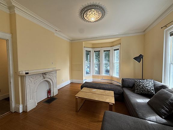 Ultra Charming, and large unit in Prospect Hill Victorian steps to Union Square. Sunshine, high ceilings and hardwood floors throughout. Living room with bay window and bedroom separated by French doors. Updated kitchen & bath. Corner lot with cute side porch. Easy parking on street with Somerville permit. 2nd bedroom is very large and has private bath + 2nd private entrance. Free laundry! Available now, Pets negotiable, no broker fee!