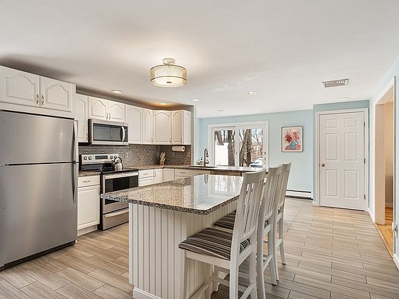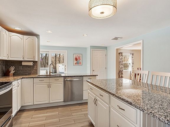 Offer deadline Monday 4/14 at noon. Seller reserves the right to accept an offer at any time. Tastefully updated colonial within walking distance to swimming, boating, skating and fishing at Waushakum Pond! The heart of this home is the updated kitchen with stainless appliances, granite counters and a large center island with seating for people to gather and enjoy the open space and natural light. Hardwood floors run through the spacious dining room, living room and first-floor bedroom. Sunlit breakfast nook leads to the outdoor space with level yard, patio and storage shed. Three generous bedrooms upstairs including primary ensuite and walk in closet all with fresh paint and flooring. Partially finished lower level, first floor laundry, walking distance to groceries, shops and restaurants.