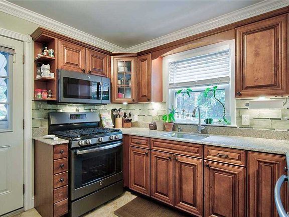 Alluring Expanded cape home featuring 3 Bedrooms 3 bath , Updated Kitchen with stainless steel appliances and quartz countertop, Updated custom built bathrooms, all hardwood floors, Gas heat , navien boiler, Nest thermostat, Updated electric, 1.5 Car garage, Inground sprinklers, Pavers and deck at the back, PVC fence, New front stoop with blue stone, New railing, New washer and dryer, Hi hats throughout the house, 5 split units, Full finished basement with pargo tiles and OSE. Basement bathroom is a gift.