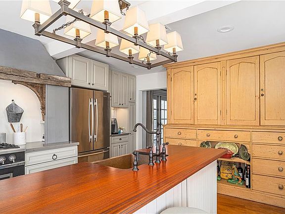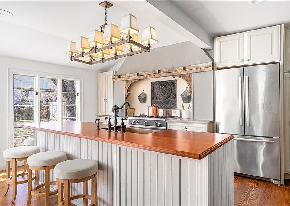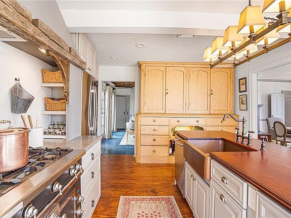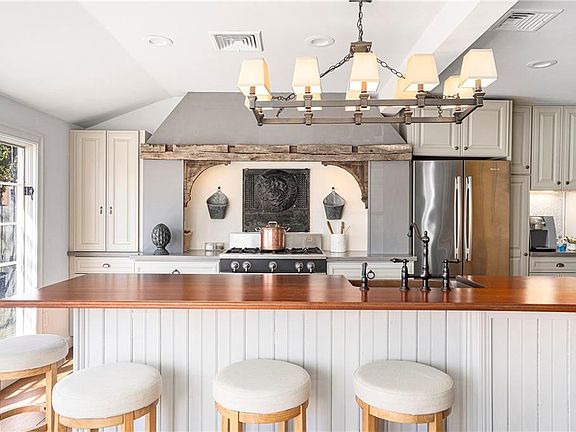 Serene views of Wickford Harbor set the scene for this 217 year old Colonial with significantly upgraded 2020 flair. Walking in and around the Village, to the pharmacy or grocery, past views of several marinas and coves and through Wilson Park make this area doubly attractive today. A welcoming bluestone path leads to an airy, light custom kitchen perfect for the family chef and entertaining. Five burner, dual fuel, beehive oven La Cornue range, beautifully detailed cabinetry with designer hardware, mahogany topped 9' 8" island with hammered copper farm sink, coffee station with direct plumbed Keurig machine, high end appliances - all designed around repurposed antique cabinetry and custom hearth, cozy sitting area for coffee in the mornings, all with glimpses of the harbor. Beautiful true divided-light wood French doors overlook the European style bluestone patio that provides a secluded and sophisticated outdoor entertaining space. Exposed wood beams, original beehive oven, and gas fireplace create a warm and relaxed living space. Three new baths all with double vanities, marble showers with rain shower heads, antique copper claw foot tub, first floor bedroom, walk-in closets and water views - this home has so many unique things to offer. All new systems - electric, plumbing, 2 zone gas heating and central air conditioning and new architectural shingle roof number among it's renovated features. One of the most desirable streets in Wickford Village!