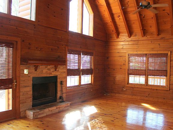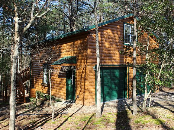 Beautiful Real log home package in established area close to Lake Nottely and just a minute to the Public Boat ramp. Gorgeous logs have ambered to a beautiful warm patina and the greatroom has soaring wood beamed ceiling. Wood burning fireplace Open Floor plan to the kitchen and dining area. Two bedrooms on the main level with a full bath, large loft bedroom with full bath upstairs. Den/Office off of the dining area and laundry room and nice sized pantry. Detached oversized two car garage with private steps to a finished large apartment/bonus room area with a full bath. Plumbing is there for a kitchen already to be hooked up. Nice gently wooded yard, stone firepit area, one owner home that has been maintained and it shows.