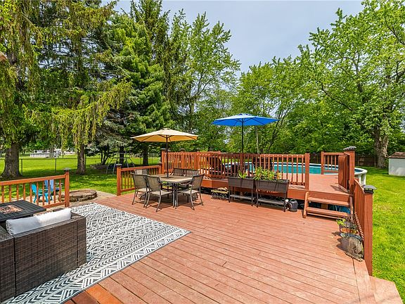 The outdoor entertaining space is phenomenal and perfectly designed for parties and large family get-togethers. Step inside to a Designer White & Bright eat-in kitchen with stainless steel appliances, tile floors, and an atrium door leading to the deck. The expansive formal dining room features maintenance-free flooring and classic 6' moldings. The entertainment-sized living room showcases a bay window and a charming accent wall.