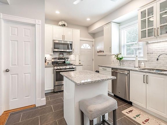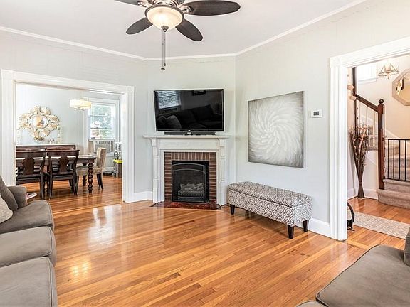 This wonderful home matches your wish-list. Lovely one-way side street located close to many conveniences plus Foss Park, Mystic River, Boat House & Assembly Row. Welcoming large porch overlooks front gardens. Spacious living & dining room with high ceilings, wood floors, wood details, ceiling medallions, fireplace, & bright SE exposure. Beautifully gut-renovated kitchen offers direct access to large fenced-in yard w/patio, large driveway & 2-car garage. 1st level includes conveniently located new 1/2 bathroom. 2nd level w/3 bedrooms, full tile bathroom plus study converted to a walk-in closet. 2 additional 3rd level rooms offer flexibility as bedroom, office, storage or more. Many updates including windows, Heat, HW & electric service, blown-in insulation, fence, patio, landscaping & more. Only ½ mile to new Gilman Sq. T-stop. Multiple bus routes around the corner plus easy access to entrance to Routes 93 and 28. All of Metro Boston within easy reach while living in an urban oasis