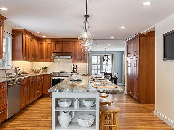 We are excited to describe our tastefully renovated Contemporary-Farmhouse-Cape. In 2016, the jaw dropping eat-in kitchen was added with chic glass pendants suspending over the large kitchen island. Elegant white and gray granite with a tasteful subway tile back splash and stainless steel appliances capture the eye. Eat-in area looks out the sliding glass doors to the porch and yard with a vegetable garden and fruit trees. In 2012, the addition was added, which included the open concept living room and dining room with high ceilings and windows galore. Also added was the upstairs full bath w/ double vanity, soaking tub & private water closet. Lastly, the whimsical master bedroom w/ vaulted ceilings, chandelier, 2 closets & charming window seat. Roof & boiler and adorable mudroom were added between 2006 - 2009. Ideally located close to 495, 290 and The Shops at Highland Commons, conservation land/trails.