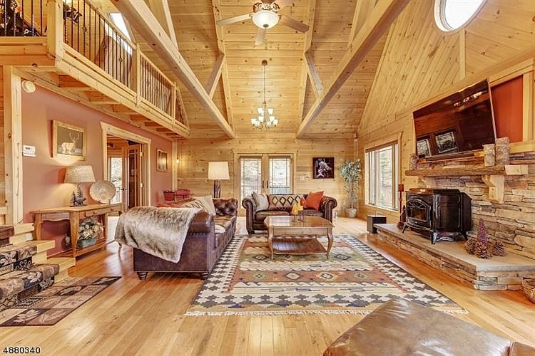 SPECTACULAR log style home with one of the most BREATHTAKING views in Ringwood, set high up over looking the Monksville Reservoir! This young custom home has lake views from nearly all angles! Open living room with vaulted ceilings, wood beams, hardwood floors, gorgeous stone fireplace pellet stove, huge windows with custom blinds, open kitchen with beautiful cabinets, granite counters, stainless steel appliances and AMAZING VIEWS!Guest bedroom with private deck and walk-in closet!Cozy office sitting room area with sliders to backyard deck and french doors off living room!Walk onto a huge, completely private deck off Master suite with STUNNING VIEWS!Master bedroom with 2 walk-in closets , master bath with skylight and jetted tub!Finished walkout basement !Whole house generator!Private hot tub! Loft area!