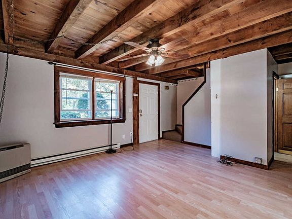 Cash Buyers take note! Great investment or owner-occupied. This freshly painted townhouse condominium features exposed beams and a daylight walkout basement. The finished basement space could be a family room or another bedroom - just add your touches to this 400+ square feet of living area. Two bedrooms on the second floor share a bathroom and offer cathedral ceilings with skylights for a feeling of spaciousness and light. The monitor heaters offer an efficient heating solution. The original electric baseboard is used only as backup. Close to Sebago Lake and all the conveniences of Route 302, this home is a great owner occupied unit or investment property. Large flat backyard and a deck off the main level/dining area - all terrific places to enjoy the outdoors at your new condo. NOT FHA approved. Association Financials will likely prevent this from being financed. Pets allowed.