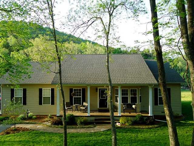 Charming Country Setting with Mountain Views and Large Level Backyard. Wet Weather Creek borders back. Interior is well designed, decorated, & has stainless steel appliances that convey. Separate Bonus Room for personal use. Split Bdrms and Large Windows. Living Room has Wood Burning Insert that can heat whole home with vent to back area. Home wired for generator transfer. Cox Cable for high speed internet wired throughout and located in cell reception area. Buried Propane Tank conveys.