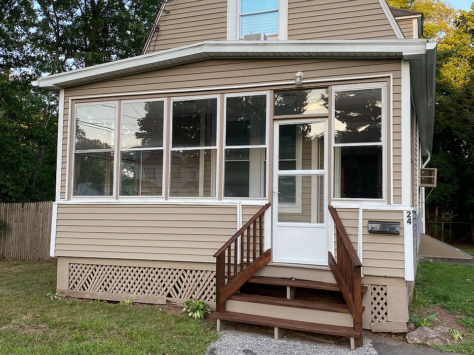 Three bedroom, 1 bath house for rent. This house is located in a convenient area. Bathroom and kitchen have been renovated. Hardwood floors. Screened in porch and backyard to enjoy outdoors. Washer/dryer hookups. No smoking. No DOGS or pets. Application with background/credit check and 2 months security deposit required. Renter is responsible for all utilities including: heat (gas), hot water, electric and cold water/sewer. Renter does lawn maintenance (mows, pick up leaves, trim bushes) and does snow removal.