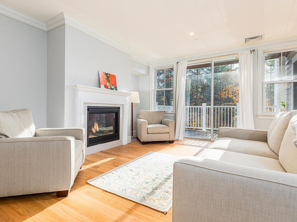LIKE NEW RAY FARM RESALE! Built in 2021, this unit has been barely lived in and maintains the feel of brand-new construction. Located on the second floor, unit 206 is one of the sunniest units in the building and overlooks the serene trees of the Ray Farm development. It's a "C" style floor plan and has 1,677 square feet of living space, featuring 2 beds & 2 baths. A variety of higher end & upgraded finishes can be found throughout this home such as quartz counters, a gas fireplace, crown moldings, and beautiful tiled showers. Other great features include ample closet space, open concept kitchen & living, and a spacious deck that has views of the wood surrounding. Included with this unit is one deeded garage parking space which also includes garage storage. Unassigned, overflow parking outside allows for an additional vehicle. Ray farm is a wonderful 55+ community that sits on 11 wooded acres of land. There is also a beautifully designed community clubhouse with a fully equipped kitchen area, fireplace, a screened-in porch, a well-equipped workout space, and a stretching/Yoga room overlooking the woods. Conveniently located right off of Route 101 at Exit 9, putting you just minutes from shopping, restaurants, beaches, professional services and I-95. Exeter's historic downtown is a mere 2 miles down Route 27 and is full of rich character, shops, restaurants, spas, and more.