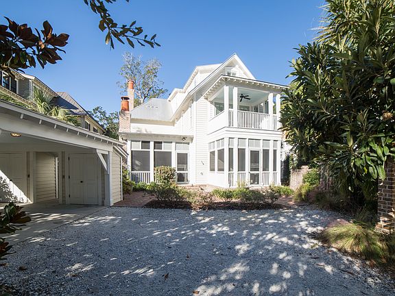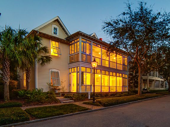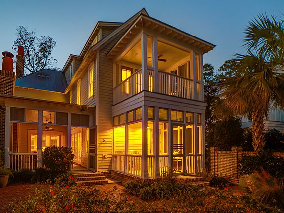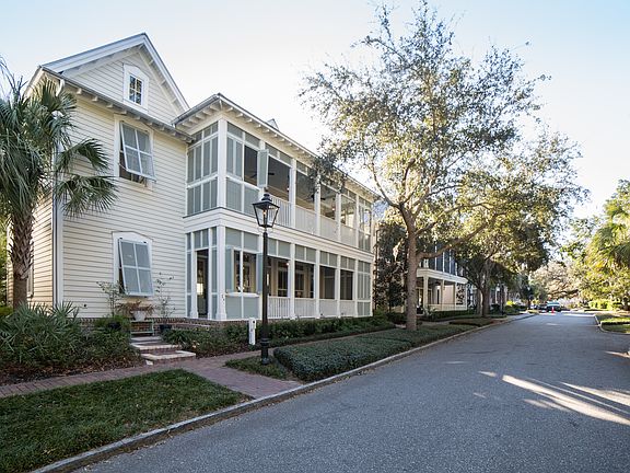 Conveniently located within downtown Wilson Village, this custom five-bedroom, five-and-one-half-bathroom home offers future owners a fabulous Lowcountry retreat in Palmetto Bluff. With three floors of indoor and outdoor living space, this 3,750-square-foot residence is ideal for both full-time and part-time residents. Four covered porches and a sprawling screened-in porch provide substantial outdoor living space that is characteristic of the coveted Lowcountry lifestyle. Two private master suites on the second floor each boast ample closet space, relaxing spa-like bathrooms, and private balconies. Spacious guest rooms on the first and second floor provide en suite bathrooms and comfortable quarters for guests, while a third floor bunkroom hosting four built-in double beds offers the perfect getaway for additional guests. A third floor living room could also easily double as a media room or art room. An open first-floor plan with expansive gourmet kitchen, Viking appliances, mudroom/laundry room, two fireplaces, office, wood floors throughout, and a private alleyway driveway with covered carport make this residence one of the most coveted properties in the Wilson Village core. Apart from the intricate detail throughout the interior and exterior of this home, this location also allows eligibility for vacation and short-term rentals through the award-winning Montage Palmetto Bluff.