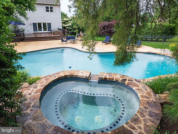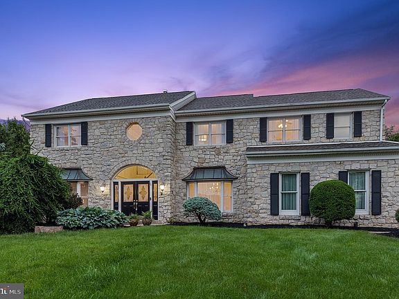 David Cutler Colonial at the end of a cul-de-sac in Providence Ridge with $93,000 of seller invested upgrades! Walk through double doors to a two story hardwood foyer to enter the formal living room with hardwood floors and double bay window. Family room with stone fireplace and custom cabinetry has double french doors leading to outdoor entertainment patio with in-ground pool and jacuzzi. Formal dining room with hardwood floors has extensive millwork and leads to a gourmet kitchen with granite counter tops and new appliances(2019). Hardwood flooring was upgraded in 2017. The breakfast room has a double bay window overlooking gardens and waterfall with koi pond. First floor also features a private office with built-ins and separate entrance. Laundry room is off the kitchen area and has its own rear entrance to back yard. Second floor features master bedroom with lighted tray ceiling and sitting room with gas propane fireplace, spacious newly upgraded master bath with custom cabinetry/ double vanities, tile, and lighting . Master has two closets including a large walk-in closet with custom built-ins. Three additional large bedrooms and a newly upgraded full bath complete this floor. Finished basement, with a powder room, is a perfect spot to entertain or relax, plus an extra room with custom cabinetry to be used for sewing, crafts, etc. This home is full of custom mill work and hardwoods. You will fall in love with the outdoor setting of in-ground pool, hot tub, pool heater installed 2017- with waterfall feature, patio, large Trex Transcend deck (installed 2020), pool integrated landscaping (2018), and quiet shaded terrace. This tranquil setting is minutes from 422, Providence Town Center, King of Prussia Mall, Philadelphia Outlets and Wegmans. Welcome home!