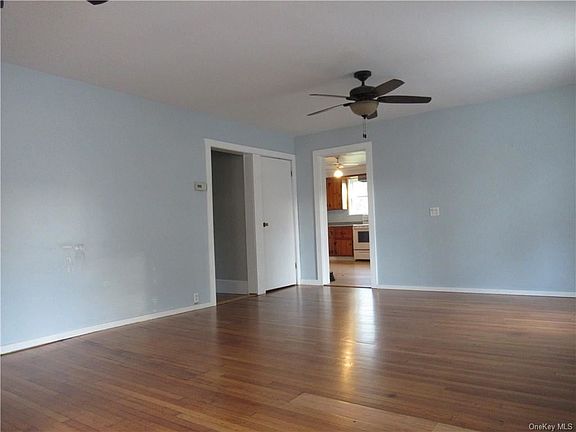 Inviting rocking chair front porch for this 3 Bedroom rental conveniently located close to town and Metro North. Bright, spacious Living Room with hardwood floors and 2 decorative ceiling fans. Large Eat in Kitchen with plenty of cupboard space. Master Bedroom with half bath and 2 more bedrooms plus full bath. Wood floors were just refinished and recently painted throughout. Washer and Dryer in the unti. Clean, dry basement for all your storage needs. Rent includes heat, hot water, electric, garbage and lawn care plus use of the storage shed. Full application required with minimum 1 year lease. Available immediately.
