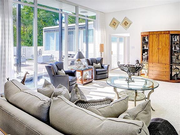 This is truly a one of a kind architectural jewel. (designed by Derek Martin) The present seller has renovated most of it and it is an outstanding home. The home is built around a courtyard that has 2 automated awnings for shade, a gas firepit, and a Koi Pond, The inside entertainment living spaces all are fronted by glass and look into the court yard. Enjoy the enormous living room, and the elegant dining room and gorgeous well equipped gourmet kitchen with heated floors. The 2 main baths have heated floors and Kohler Numi Toilets. The Master Bath has an electric, heated towel rack. Hunter Douglas blinds and Plantation shutters complete the windows. Property 34,619 Sq FT (larger than 3/4 acre).