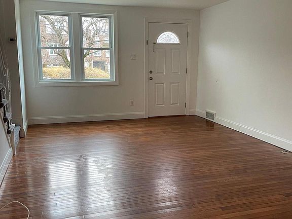 A Home for the Holidays! Beautiful home ready for immediate occupancy. The front patio is a perfect spot for an outside grill and sitting area. Enter into the spacious Living with hardwood flooring expanding into the dining room that opens up to the eat in kitchen. The kitchen is updated with custom tiled backsplash and flooring. Classic oak cabinetry with stainless steel sink, appliances and granite counter tops. Recessed lighting has been added to various areas within the first floor to add lighting. A decorative wrought iron railing leads you to the second floor with new carpeting. The primary bedroom has a ceiling fan & walk in closet, there is a hall linen closet, 2 additional bedrooms w/closets. You will love the updated bathroom with custom tile work, new vanity and new sky light with a convenient window to allow for easy opening. The basement is ready to be finished your way! The traditional basement door has been removed and relocated to allow for a storage shelf in the rear utility area. The garage door has been removed to be prepped for a future room, a new entry door was added with the rear area blocked up and finished. There is a rear parking space. This home includes many updates: new plumbing from Bathroom to basement, updated electric with outlets added throughout. New rubber roof 10/23, Central Air conditioning, new moulding, new windows and fresh paint. Convenient location offers a quick commute to the airport and major highways, within walking distance to public transportation & shopping. Move in and enjoy this beauty!