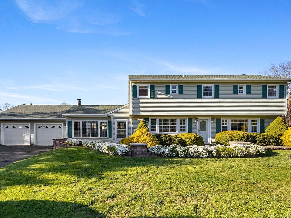 Come see this large, 4 bedroom 1 and a half bath vintage split level home in East Windsor. Located on a quiet street, the landscaping around this house alone will draw your attention! Beautiful pavers lead the way through a lush yard complete with a shed, patio, stone wall, and an adorable bridge over a colorful garden. Inside, you'll find a large living room with a vaulted ceiling and big windows that allow you to enjoy the view. The bright kitchen, with it's calming colors, feature newer appliances and solid cabinetry. The main level houses a dining room, cozy living space, and a warm pellet stove for those chilly winter nights. The entire home is cooled with a central air system, has a newer roof, windows & vinyl siding, and an attached two car garage. Located near all major highways & shopping. Take time to come to our open house to see this gem for yourself!