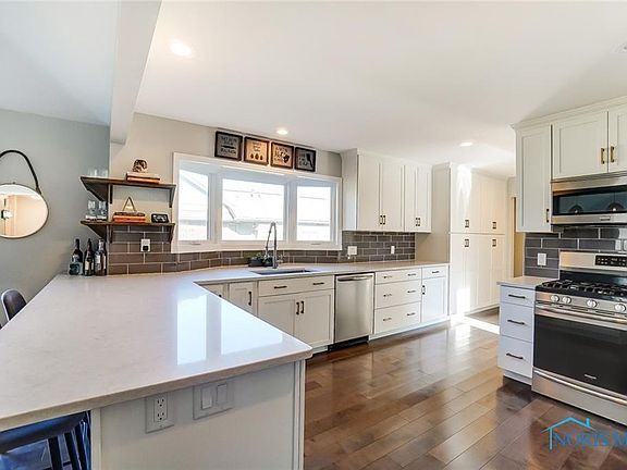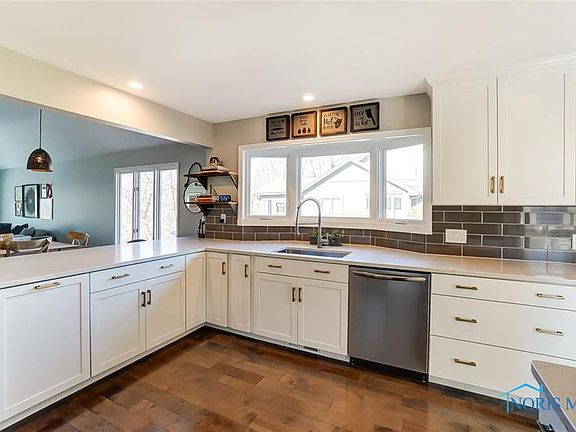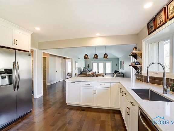 Dream kitchen with quartz counters, stainless steel appliances, soft-close drawers, pantry rollouts and subway tile backsplash. Master suite with four closets and updated bath with tile shower, soaking tub and large granite vanity. Hot water tank, furnace and central air in last five years and roof in last ten years. Full windows in lower level with rec. room and den with closet. New deck with granite counter, new landscaping, all new flooring. Built-in locker in back entry and first floor laundry room. Custom bar with reclaimed wood in dining room. Oversized garage. Overlooking wooded ravine