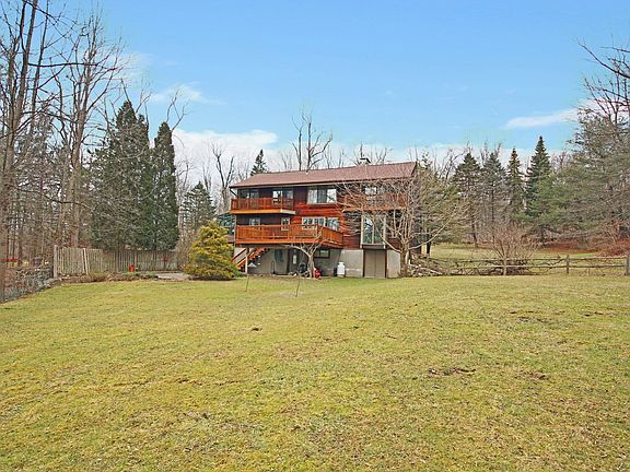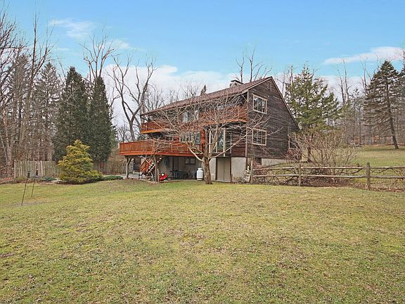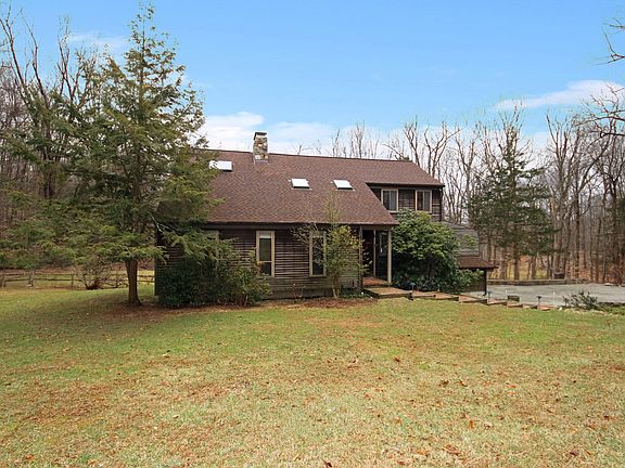 Idyllic modern country retreat on the most spectacular, private, and level 4 acres located between Putnam and Huntington parks (largest state park in CT with over 1,000 acres, trails and lake). This light, bright, and open home was designed to capture the beauty of living in nature with soaring ceilings, skylights, glass roofed solarium, multiple balconies, deck, and stone patio. Total 2,707 square feet, drenched in natural light with 3-4 bedrooms, 2 full baths, and 2 fireplaces including floor to ceiling fieldstone fireplace in the dramatic great room with planked and vaulted ceiling, skylight, and open to the sunny dining room for large family gatherings. Enjoy dining fireside by the 2nd fieldstone fireplace in the spacious eat in kitchen with adjoining rear deck. The inviting solarium, with its glass walls and atrium roof, is the perfect place to watch the leaves turn and the snow fall. In the spring and summer, the backyard becomes a circle of green. plus the seasonal stream/waterfall is a special treat. Other features: main floor study/optional bedroom with nearby full hall bath; additional library/office with built-in bookshelves adjoining the solarium; 2nd floor open family room with sliders to the rear balcony; large master bedroom also with sliders and balcony; 2nd bedroom with skylights; 3rd large bedroom; plus updated hall bath with marble tile, jetted tub (great backyard view), and frame-less shower. Many updates with newer roof, windows, plus convenient location, just 4 miles to downtown Bethel/train and 8 miles to Georgetown shopping/restaurants/trains.