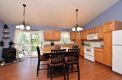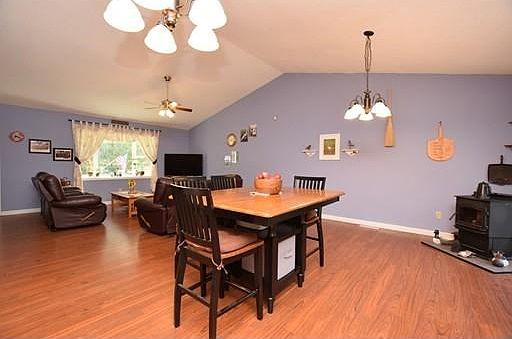 - Kit Dscrp: Dining Area, Deck - Exterior, Ceiling - Cathedral, Open Floor Plan, Flooring - Laminate, Wood / Coal / Pellet Stove, Slider, Exterior Access
