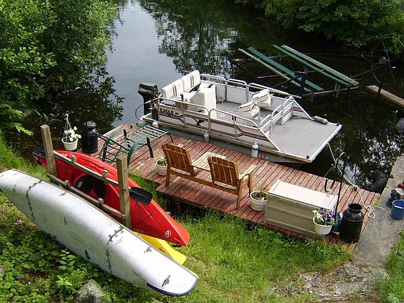 This seasonal waterfront home sits at the very north end of Trout Lake on the quiet outlet of the lake. This private lake is 365 acres, 110' deep and offers canoeing, boating, swimming, and excellent fishing for Lake Trout, Rainbow Trout, Smallmouth Bass, Brown Bullhead, Yellow Perch. This is a very nice cottage or could easily be converted to a year 'round residence as there's a drilled well, 2 garages, and year 'round access. It was built in 1982 and was completely renovated in 2013. There's 1500' of frontage on Woodrow Road and 40' of Lake frontage. The large 24' X 28' two-stall garage has a 2nd story with living area that may be used for guests or rental income potential.
