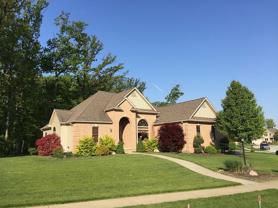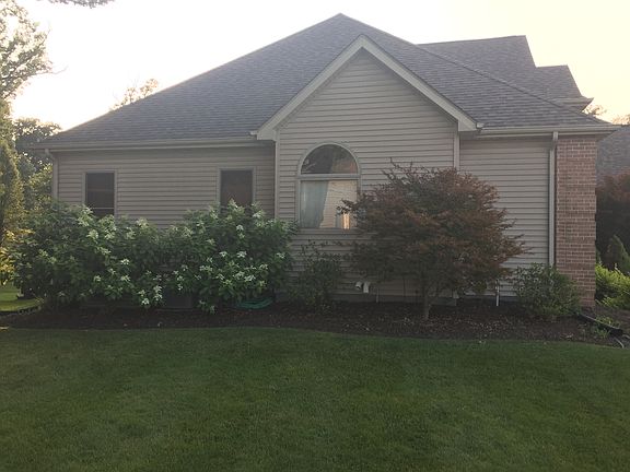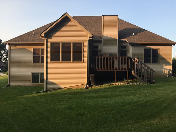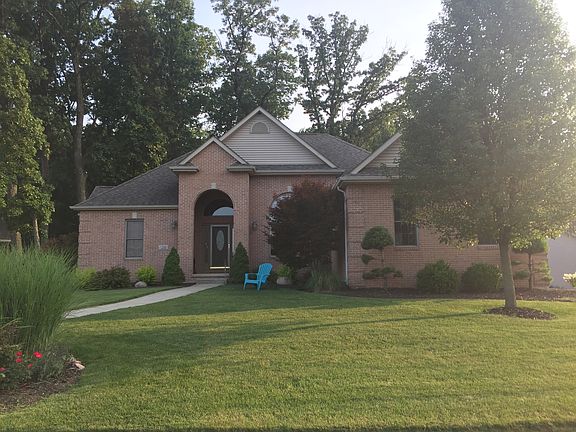 Better than new split Ranch with wide open floor plan and a huge daylight basement. This gorgeous home has over 2202 sq ft finished living space and another 1800 +/- unfinished basement space to grow! Backing up to a private wooded back yard increases the enjoyment of the 4 season sun room and the views from the large windows in the great room. Among the many upgrades included are: red oak hardwood floors, crown molding in dining room, 14 ft ceilings in great room, dining room and foyer, Anderson wood-cased windows and wood blinds, 9 ft basement ceilings, gas fireplace, side-mount garage, 2-car garage has kick-out for motorcycle/riding mower storage, Jack & Jill bathroom, jacuzzi tub in master bathroom, private toilet in master bedroom, beautiful tray ceilings in master bedroom, large 4th bedroom suite downstairs for guests/family, underground sprinkler system, gracious brick covered porch and entry, storage areas in basement and above garage w/ladder access. New appliances replaced this last year: water softener, dishwasher, microwave, water heater, air conditioner, and garage door opener. ...the viewing of this beautiful home is worth the visit!
