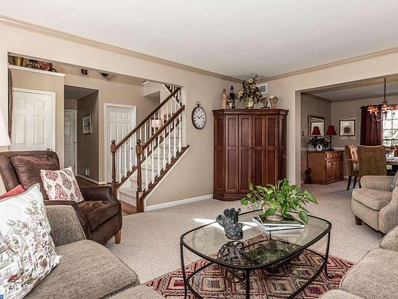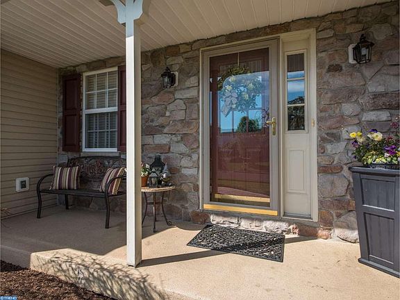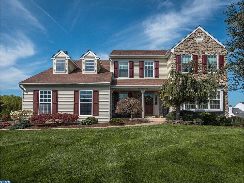 Welcome home to this exquisite 4 bed 2.5 bath Colonial in the desirable Doylestown Knoll development. From the inviting front porch to the finished basement, this home has plenty of upgrades and built-in cabinetry. Enter into the 2-story foyer with turned staircase and hardwood flooring that continues through the kitchen. A nice sized living room, dining room and family room with a gas fireplace compliment the main level. The kitchen, with granite and Corian counters, leads out to the charming breakfast room addition with a full wall of cabinets and a built-in desk. The covered patio, with enhanced lighting, affords additional space to entertain outdoors rain or shine. This home has been impeccably maintained both inside and out with professional landscaping, a new paver walkway to the front door, and a rich, plush lawn with an electric dog fence. Inside is tastefully decorated and neutrally appointed. All bedroom closets have organizers as well as the 2-car garage. The master bedroom has a sitting area with a built-in book shelf, and the en suite bathroom has been beautifully updated with new cabinets, double sink, and a large tiled shower with rain head fixtures and seamless glass door. Another bedroom has added square footage benefitting from the addition below. The basement is thoughtfully finished with extra storage and more built-ins. Just minutes from the Doylestown boro with plenty of restaurants and shopping, and the award winning Central Bucks School District, this is a home you won't want to miss!