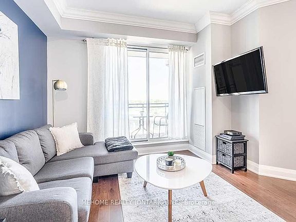 Bright and sunny Unit With A Practical Layout, 9' Ceilings, Crown Molding, In-Suite Laundry, & Tasteful Upgrades. Large Kitchen With A Breakfast Bar, An Undermount Sink, Granite Counters, & Stainless-Steel Appliances. Spacious Balcony With The Included Tiles & Views Of The Courtyard. Great Features include a Walk-In Closet, 1 Owned Parking Spot, & A Locker. Amenities Include 2 Gyms, A Rooftop Pavilion, & More.