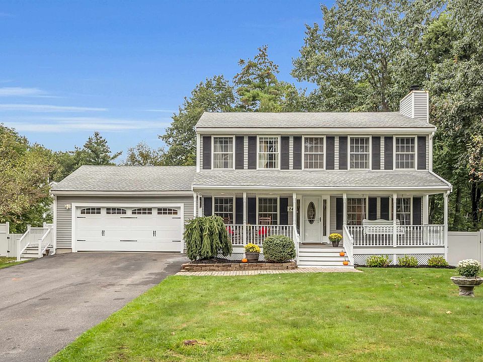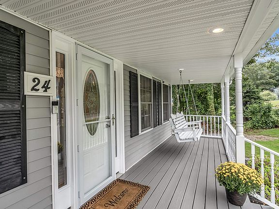 Welcome to 24 Wright Rd. located in sought after "Bliss Farm Community" when you arrive you will be quickly drawn to the beautiful mature landscape, and a quaint farmers porch. Once you step inside you will feel right at home with the open concept extending from the updated kitchen to the living room, a wood fire place for those chilly nights, 1st floor half bath & laundry hook ups, a pleasant sized dining room. Primary bedroom offers a walk-in closet, two other bedrooms are generously sized with good closet space and a large full bathroom on the 2nd floor. Bonus room in the basement lets you step right into your tranquil back yard which boast 2 decks, fenced in yard, fire pit, above ground pool, shed, and lots of area's for a veggie garden. Enjoy your large 2 stall garage for those snowy days.