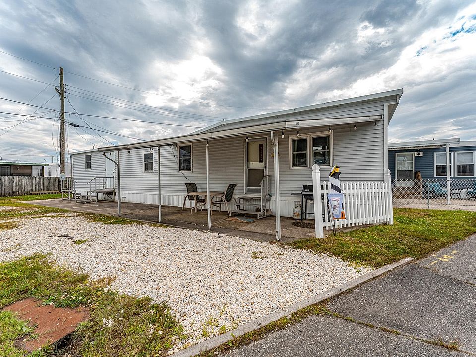 A charming, covered front porch greets you as you arrive to this 2 bedroom, 1 bath mobile home near the bay! Head inside to find a large living room with wood-look vinyl flooring and a pass-thru to the kitchen. In the kitchen, you will find wall ovens, a free-standing, gas range with oven, refrigerator, a pantry/closet, and room for a table and chairs. The large primary bedroom has a ceiling fan, a built-in desk and armoire, and a closet. The second bedroom also offers a ceiling fan and a closet with sliding doors. The bathroom hosts an extended counter with a sink, under cabinet storage, a tub/shower with a window for natural lighting, and a space for your washer and dryer (included!) with overhead storage. The covered patio provides a great place to start your day with morning coffee and bay breezes or relax after a long day exploring. A storage shed is also included! Located just 1 block to the bay and Lighthouse Pointe Marina as well as easy access to Wildwood Blvd which leads to local eateries, shopping, and entertainment! The monthly rent is $850 and being sold as-is.