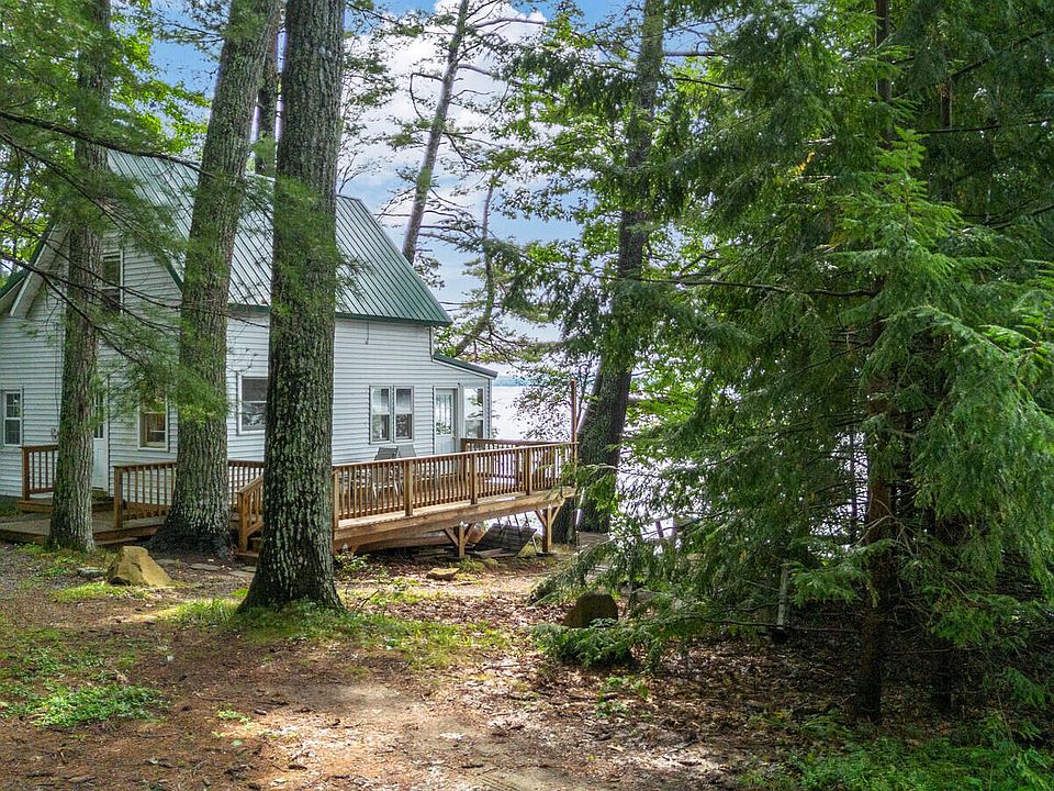 North Pond - Charming seasonal cottage steps from the lake with panoramic lakes views. Bright and sunny interior with 2 bedrooms ,living ,Dining area, full bath and Sun room facing the lake. Expansive Attached deck facing the lake. Another deck by the waters edge leading to your docks.