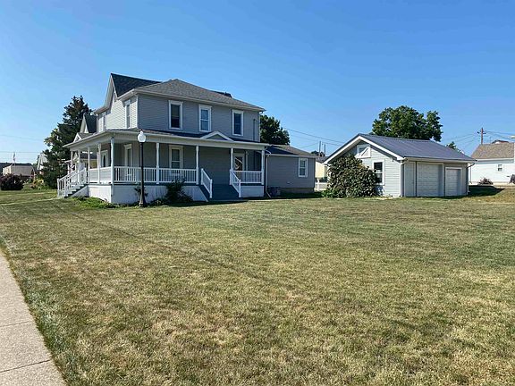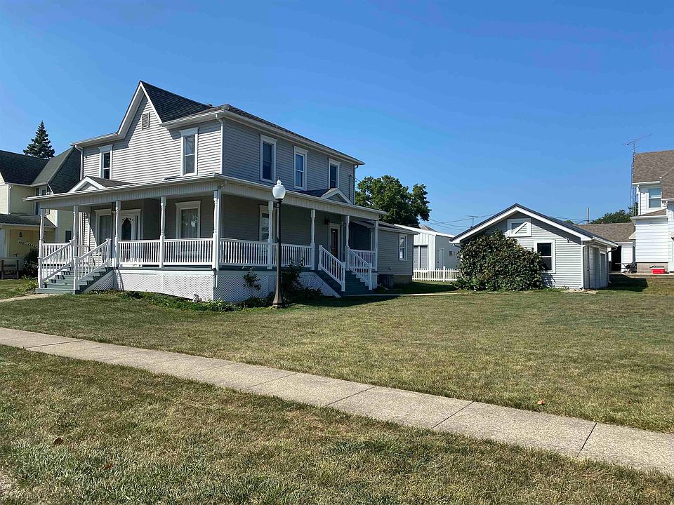 3 bedroom, 1.5 bath, 2-story with a wrap-around covered porch and a 2-stall detached garage.