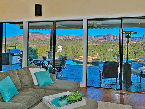Look no further than this heavenly setting on almost 2 pristine, private acres, on two separate lots; engulfing 180 degrees of Sedona'smagnificent Red Rocks! This timeless home entices the finest of Sedona inside with its breathtaking views; perfectly expanding from Cockscomb Butte to CoffeePot Rock. Fully fenced, vegetated and meticulously maintained land; bountiful with private outdoor living, this home preaches solitude and splendor by day and entertainment by night. Open kitchen, living & dining areas make engaging in organic conversation most comfortable, while separate bedrooms define privacy. Replete with a gated entry, private pool & jacuzzi, built in inferred bbq, flagstone patios, fireplaces and automated lighting; just a few amenities this home presents and is ready for...