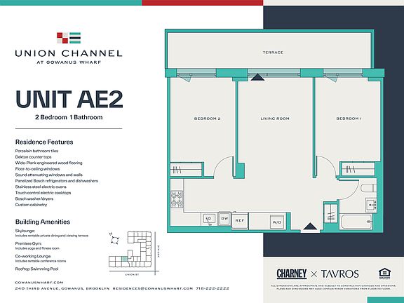 Union Channel marks the debut of Gowanus Wharf's campus of residential buildings in the heart of Gowanus, Brooklyn. Situated on the corner of Union Street and 3rd Ave, Union Channel is a collection of 224 apartments, easily identifiable by its undulating facade and metal paneled angular-shaped bay windows, and one block from the R train and just 3 stops into Manhattan. *Residences* Designed by Fogarty Finger architects, the uniquely crafted residences promote balance in pursuit of the living ideal. Inspired by a neighborhood flowing with artists, creatives, and culture, Union Channel is an ode to the enduring spirit of Brooklyn and no detail has been overlooked. From work-from-home to hosting friends, every apartment is built with intention. Apartment features include open and airy layouts, island kitchens, panelized appliances, industrial countertops, wide-plank flooring, floor-to-ceiling windows, European-like balconies, and ample closet space. *Amenities* The Drift Club at Union Channel is for those seeking a balanced lifestyle and exclusive access that extends outside the walls of the building. Featured amenities include: 24/hr Doorman + Concierge Premier Fitness Center + Yoga Room with regular classes and programming Work From Home Lounge Skylounge with Private Dining and Viewing Terrace Rooftop Pool with Skyline Views Landscaped Roof with Bocce, Cornhole, Bar, and BBQs Our connection to the community is equally important. We've created a custom Gowanus Wharf App designed to bring what matters most to your fingertips. On the app, access your complimentary Brooklyn Museum membership, join interest-based community groups, create and attend local events, reserve amenities, open your apartment, sign up for fitness classes, meet your dog concierge, and much more. In a city where change is the constant and the constant moves at hyperspeed, development doesn't need to be a dirty word. Our mission is to activate a residential and retail experience that is an authentic expression of our locale. That catalyzes community, culture, and sets a new standard for city living. Gowanus Wharf is designed to achieve the perfect balance of art and commerce, nature and digital integration, and legacy and transformation. A tribute to the enduring spirit of Brooklyn, The Wharf is a stage built for residents, retailers, and visitors to pursue their living ideal. From a place of balance, the most important things in life come into focus.