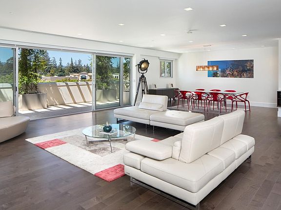 Whether a primary residence or pied-a-terre, this unique offering combines luxury living in the heart of downtown Los Altos, ~ Built in 2012 ~ top-level condominium is chic & modern with espresso-hued walnut floors, an open concept floor plan, & vast expanses of sliding doors to a tremendous terrace overlooking the western hills ~ Approximately 3588 sf plus ~800sf terrace ~ Media room, office, wine storage, chef's kitchen, & 2-private bedroom suites plus half-bath ~ Secure underground parking for 2 cars ~ electric car charger, including wiring to P2 from fuse panel in house, as well as network wiring (Cat6) to car charger for connectivity ~ Keyless access control system & associated door hardware electrification ~ Network & A/V system: Machine rack in server room ~ Satellite dish on roof ~ Comcast Internet ~ Whole-house wifi ~ AMX touch screen & Lutron QS shades in each room ~ Terrace with trellis & planters with built-in watering system ~ New water heater and re-circulator