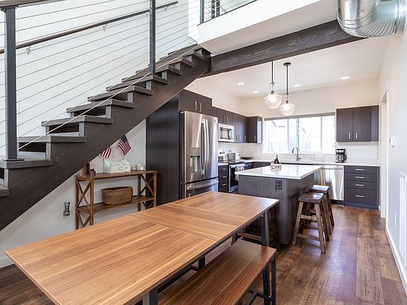 This 2 bdrm/2 bath plus loft condo is situated in Whitefish features a balcony, BRAND NEW condo with high end kitchen, fully furnished or can come unfurnished, comfortable beds with brand new comforters & duvet covers, and a bbq grill. The kitchen comes with gorgeous counter-tops and beautiful cabinetry, it is well equipped. The kitchen has a bar counter and 2 bar stools for seating. The dining table has benched seating to accommodate larger groups. The living room has a TV, Xbox, comfortable lounge sofa. The door leads out to the deck with BBQ grill. This home offers fast reliable internet connection. This home has three levels. First level is the master bedroom with ensuite bathroom. Master bedroom has a comfortable queen bed. The second level has the living room, kitchen, and the second bedroom with a full over twin bunk plus a full trundle pull out bed. Additionally, there is a laundry room with dryer/washer. The third level is a loft where you can lounge, play, work that also with a queen air mattress. This home is close to the river walk, near the Smith soccer field and walkable to the hospital! There is central A/C and heat. Also you have access to the club house with hot tub, gym, pool/table! Renter is responsible for all utilities.