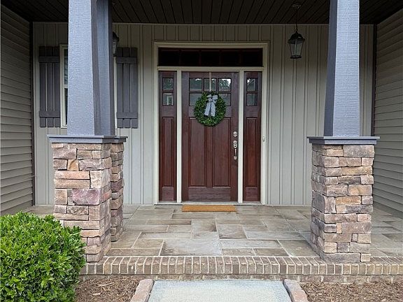 Nestled in the highly sought-after Adams Mill area, 240 Applehill Way offers the perfect blend of convenience and tranquility. This stunning 3-bedroom, 2-bath home is ideally located near well-rated schools, popular dining spots, and excellent shopping. This home is tucked away on a quiet, flat lot that backs to peaceful woods. The fenced backyard and extended patio provide a private haven, ideal for relaxing, entertaining, or creating your dream outdoor space. Inside, you'll find a wide entryway, vaulted ceilings, and a bright, open living area centered around a cozy fireplace. The kitchen features granite countertops, stainless appliances, and a welcoming layout perfect for gatherings. The primary suite offers a spa-like retreat with a double vanity, soaking tub, tiled shower, and large walk-in closet. Additional features include LVP waterproof flooring, upgraded lighting, French doors to the patio, walk-in laundry room with cabinetry, tankless water heater, and a full 2-car garage with utility sink and easy access. This home checks all the boxes—don’t miss your chance to call it yours!