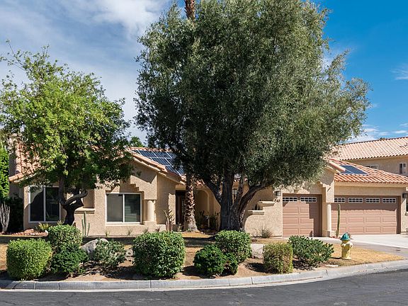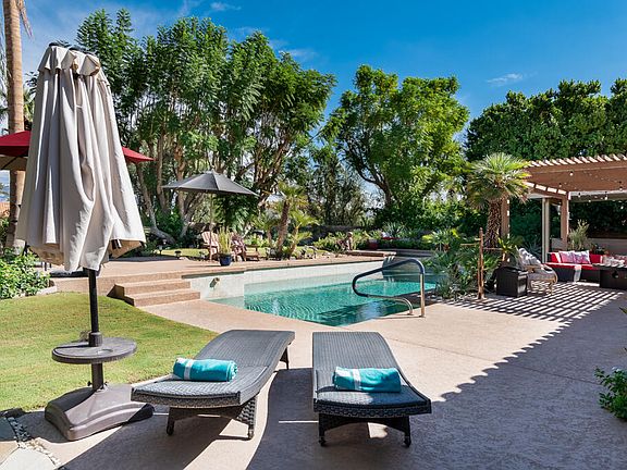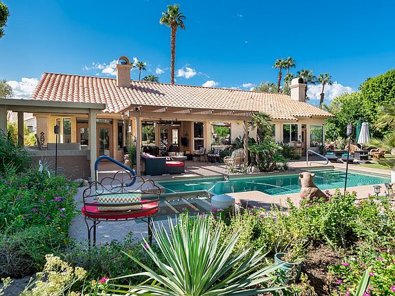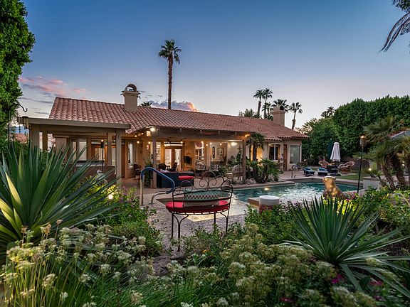 PRICE IMPROVEMENT! Rarely on the market, single level on cul-de-sac corner lot in The Links, Desert Falls Country Club! This oasis of a home boasts one of the largest lots in Links just shy of 14,000 SF. The backyard is ultra private with lush trees-2 citrus-and plants surrounding generous sized saltwater pool and spa. Enjoy backyard mountain views and tons of space perfect for entertaining with a newer built in BBQ island where your guests can gather at the tiled bar to watch cooking on the oversized BBQ,dual burner and True refrigerator. Steel tube misters line the patio cover down to the BBQ to keep everyone comfortable while watching the outdoor TV. The home itself features vaulted ceilings in almost every room from the spacious living room to the kitchen open to the family room area with wet bar. The primary suite will wow you with it's circular windows, fireplace, oversized soaking tub and separate shower, walk in closet and French doors out to the patio. On the whole other side of the home are the other guest bedrooms for maximum privacy. As well as the room in the front which can be an office or another bedroom. A/C in the 3 car garage with space for golf cart. All this in Desert Falls CC - homeownership includes cable, internet, HOA maintained front yard, fitness, tennis, pickle ball, The fitness center has circuit & aerobic machines,free weights and classes. Conveniently located with easy I-10 access as well as restaurants and retail close b