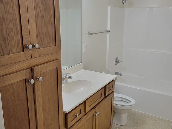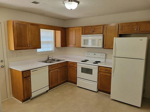 The unit has brand new carpet. Kitchen has refrigerator with icemaker, stove, dishwasher, and built-in microwave. It has washer and dryer connections and central heating and air. It is an 18 month lease. There is a $35 application fee. It is a non-smoking unit.