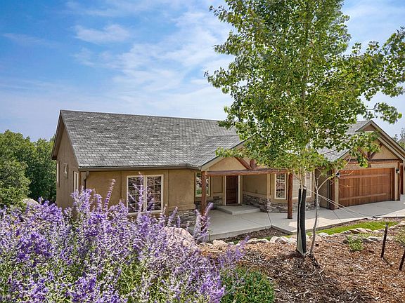 Must see custom ranch with spectacular city and Cheyenne Mountain views! This 5 bedroom/3 bathroom/ 3 car garage home is overflowing with amenities and luxury. The beautiful entryway with wood floors and tile inlay opens to a free flowing floor plan. The dramatic great room with fireplace and walkout to covered Trex deck is truly the heart of this home! The stunning kitchen features incredible Tuscan glazed Alder cabinetry, stainless steel appliances, incredible tile backsplash and beautiful Corian countertops. Enjoy your meals in the spacious breakfast nook or the formal dining room. The main level master includes a walkout to the covered deck which just happens to be the perfect place to take in one of Colorado's brilliant sunrises. The spacious master opens into the ensuite with double vanity, free standing shower, soaking tub, and an expansive walk-in closet with organizational system. The main floor also includes 2 additional bedrooms and a full bath.