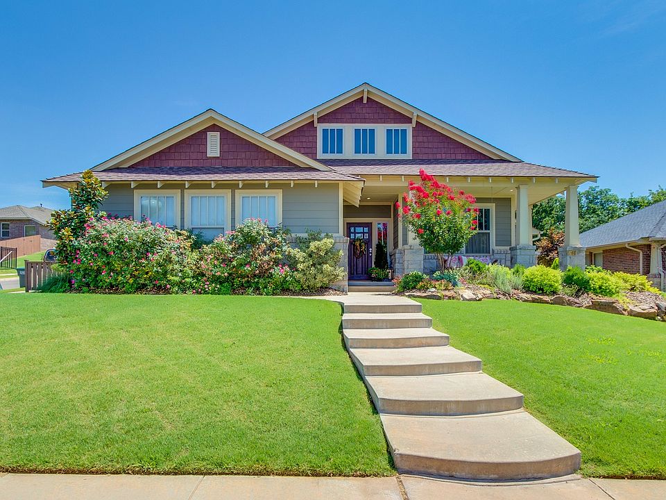 PRICE REDUCED FOR QUICK SALE! Wait till you see what has been done to this Parade of Homes award winner! This former McCaleb Homes model home looks like it stepped out of a magazine! Craftsman Bungalow style with a huge wrap-around porch, corner lot and even a porch swing! 3 bedrooms, formal dining room, study, bonus retreat and storm shelter. This home has it ALL! Outdoor kitchen with a custom pergola and wine fridge. Park-like setting in the backyard with privacy curtains (negotiable) makes it private and beautiful. Smart-home system programs the music, lights, etc for you! Indoors you'll love the new Restoration Hardware fixtures, hardwood floors, built-in cabinets, Subway and vintage-inspired tile and master bedroom ceiling beams. Located in award winning Arbor Creek community - historically inspired by the 1930s Bungalow style homes. Easy access to I-35, downtown Edmond and Oklahoma City. Furniture is negotiable.
