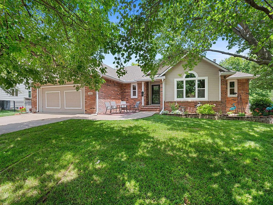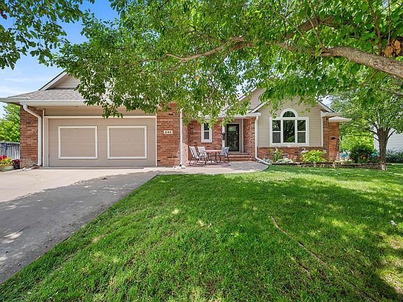 Welcome to this beautifully maintained, move-in ready home in Andover, Kansas! Boasting 5 large bedrooms, 3 full bathrooms, and a PRIVATE IN-HOME THEATER complete with a projector, projector screen, and surround sound system (all included!) making this home perfect for cozy movie nights, comfort and entertainment. In the spacious open-concept kitchen, you'll discover granite countertops, a walk-in pantry, built-in desk, and a upgraded range oven and dishwasher that are only 2 years old. The desirable split-bedroom floor plan offers privacy and includes main floor laundry room for everyday convenience. Outdoor living is just as impressive with a covered deck, attractive landscaping, and an 8x8 storage shed for your tools, toys and outdoor equipment. The backyard is fully fenced and includes a well manicured lawn and an irrigation well. This home is loaded with modern updates and high-efficiency features, which include new energy-efficient Restoration triple pane windows, a new triple-pane sliding door, new flooring throughout the main level, a tankless water heater, whole-home NEVO water filtration system, new garage door springs and opener, and commercial-grade gutters with guards. Don’t miss your chance to own this meticulously cared-for home in a desirable location. Schedule your showing today!