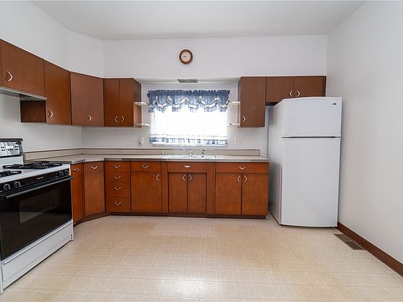 Two bedrooms and two baths make this Scott Twp. home a wonderful possibility for those wishing to be in the Chartiers Valley School District. Not a duplex, this home has two front entrances from the front porch. A spacious eat-in kitchen has a multitude of cabinetry, gas stove and refrigerator. Living room, full bath with stand-up shower and a large entryway/laundry round out the first floor. A full size freezer and washer and dryer on this level are included. Walk out to the rear covered porch with stairs to the back yard. The second floor has two generously sized bedrooms with a full bath between. The one car integral garage and long driveway are off the back alleyway. Conveniently located near grocery, shops and dining. Easy access to surrounding boroughs and Rts.79 and 376.