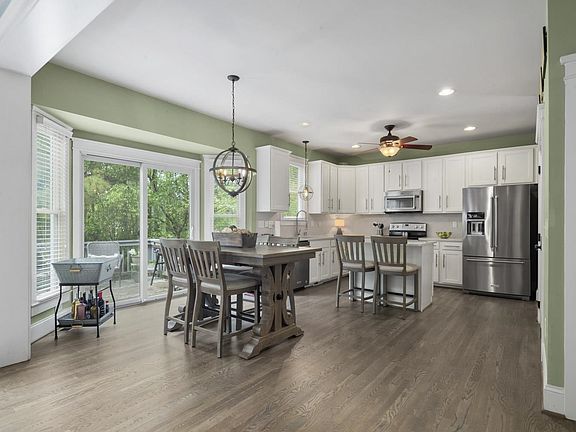 Beautiful updated home with wooded view in highly sought after Sunset Oaks! Four bedrooms plus a huge bonus room. Quartz counters and stainless steel appliances in Kitchen. Spacious kitchen overlooks eat-in dining area and living room which is perfect for entertaining. Separate dining room off kitchen, First floor office with tons of natural light and double door. Two car garage, Huge fenced backyard with brick patio overlooking woods and backs to creek. Master Suite w/ two walk in closets, dual sinks and garden tub in master bath. Refinished hardwoods on entire first floor. Roof, HVAC, hot water heater, and the Kitchen have also been updated since owners have lived in home. Community pool with lazy river (fee). Close to shops, restaurants, parks and schools. Very close to 540 once it opens! Quick access to Raleigh...Let's go Canes!