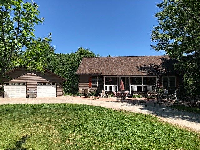 Fantastic home on 4 private acres literally only 5 minutes from city amenities. This home was built in 2005 and is in great overall condition. The home features 4 bedrooms, 3 baths and an incredible floor plan. The main floor has an open concept with vaulted ceilings, 3 bedrooms and a well equipped kitchen with a walk in pantry and loads of counter and cabinet space. The master bedroom suite is the one the biggest I've seen with a private bath and large walk in closet. The walkout lower level adds additional living space with a family room, 4th bedroom, 3/4 bath and all kinds of storage. Check out the oversized 2 car garage - it's well equipped with 200 amp electric, fully insulated and the garage heater is only a year old. Enjoy summer grilling on the back deck or relaxing on the front porch swing - the deer watching is great from either spot. The 4 acres is nicely wooded and very private.