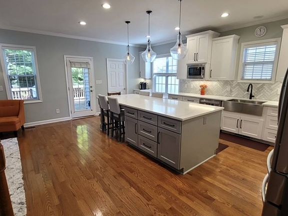 This beautifully updated 3 bed/2.5 bath, 2875 sqft home, is ready for you. The inviting first floor is filled with natural light, gorgeous hardwood floors and conveniently located off of Kildare Farm Rd, I-540 and minutes from downtown Cary. The updated kitchen features quartz countertops, stainless steel appliances, ample storage space, tile backsplash, large island and an open floor plan to the living room. A home office space with french doors and a formal dining room complete the first floor. Retreat upstairs at the end of the day to the large primary bedroom complete with a walk-in closet and a spa like en-suite bath. The primary bath's tranquility of the large vanity with dual sinks, separate walk-in tiled shower and soaking garden tub is sure to ease the stress away after a long day. Two additional guest bedrooms and a full guest bath with dual sinks is sure to give everyone the needed and restful space. The third floor bonus room provides a flexible and great space for entertainment. Outside, relax on the back deck that overlooks the private fenced-in back yard or take advantage of the community pool and playground just minutes away. The detached two-car garage has incredible storage space. Convenient to restaurants, shops, parks and the highway, the 240 Butterbiggins home won't last long. Home is available mid-July. Tenant responsible for all utilities and lawn maintenance. No smoking of any kind on property. Washer/Dryer hookups only. Pet Negotiable w/ pet fee. Renters insurance required. Application requirements: income 3x the month's rent, clean credit history over 580+ and clean rental history. Dishwasher, Gas Stove, Island, Microwave, Refrigerator, Carpet, Ceramic Tile, Hardwood, Air Conditioning, Blinds, Ceiling Fan, Fireplace, Garage, Garden Tub, Community Pool, Playground & Pet Friendly.