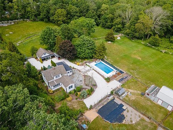 Welcome to Owls Nest... Beyond the handcrafted stone walls and wooden gates adorned with silhouettes of owls lies a unique and special retreat. Sited on just under seven acres, with fields, meadows, and trails meandering through the woods, this home, grounds, and outbuildings have been curated into an exceptional experience in living well. The main house was originally built in 1851, and the best vestiges of the past remain in the hand-hewn beams, wide plank floors, and stone fireplace. Updates were made with care and artistry, from the whimsical wallpaper and custom window treatments to pocket doors and bespoke tilework. Outside, a crushed shell wraparound driveway and expansive patios with detailed stonework are bordered by a lush landscape with native trees and specimen plantings. To one side of the house, a garage space has been converted into a studio ideal for making art or practicing yoga, with a loft above, and to the other side, a barn and fenced pasture neighbor the raised beds and garden space. An inground swimming pool takes advantage of the sunniest central location behind the house, while meadows and stone walls stretch out to the edges of the woods. Venture onto the extensive network of private trails to explore a cleared pine grove, steep hills, a cascading brook, and nearby ponds. For those seeking a tranquil life in an inspiring home among the mountain laurel and wildlife, the wait is over.