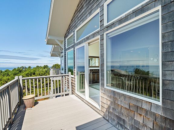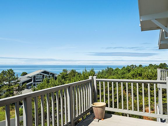 AWE INSPIRING OCEAN VIEW panoramic vistas include miles of horizon. This beautifully kept Craftsman has 2 ensuite bedrooms plus a den used for guest sleeping. 3 full baths incl a jetted tub. Oceanview decks on 2 floors. Exceptionally large backyard and oversized double garage with 140 addl finished sq ft with room for a shop or hobby area. Tasteful finishes in neutral tones, soaring vaulted ceilings, walls of windows. Most furnishings may be included, some artwork excluded. Quiet gated community in the little Oceanside hamlet. Beach access, pickle ball, community room, and more.